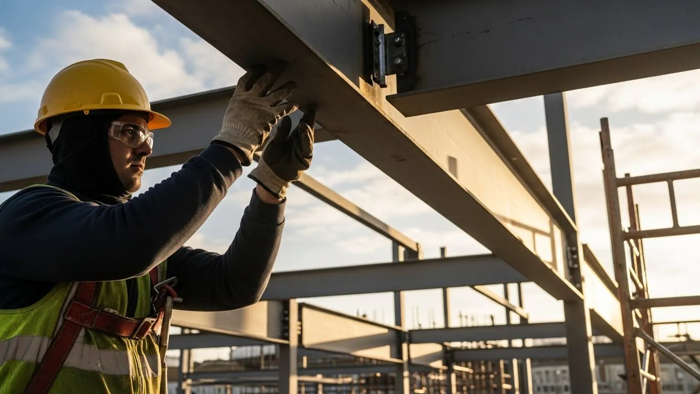 Após a fundação, inicia-se a construção da estrutura, que pode ser de concreto, metálica ou de madeira, seguida da alvenaria que forma as paredes.